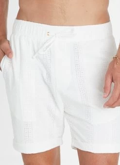 The Alabaster Taylor Shorts by Aqua Blu Australia are the perfect bottoms for warm balmy nights, crafted from luxurious broderie anglaise and featuring an elasticated drawstring waist and side pockets.