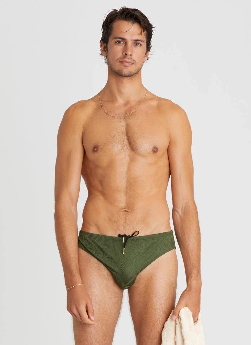 The Back to Basics Racer Briefs by Aqua Blu Australia feature an adjustable draw cord and encased elastic waist, these briefs provide a comfortable and secure fit. Whether you’re hitting the beach or the pool, these briefs are a classic style that are perfect for any swimwear collection.