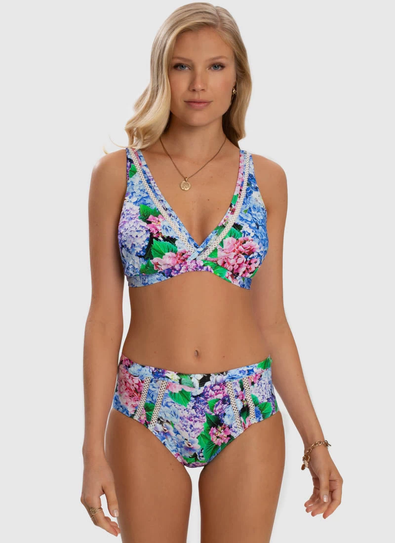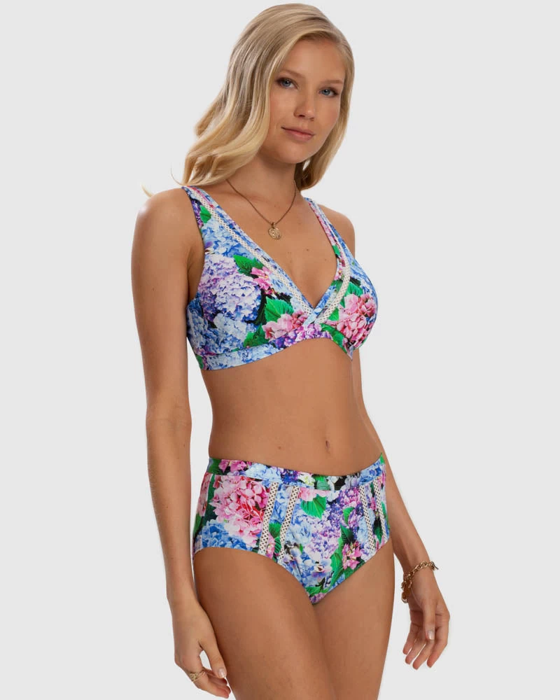 The Blossom DD/D Cup Bikini Top by Aqua Blu Australia embodies minimalist design with wide adjustable shoulder straps and back clasp. The ultra-soft luxury fabric, removable cups and underwire support is designed to shape and support the body.