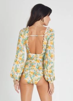 The Dahlia Lizza One Piece by Aqua Blu Australia sets a new standard for swim with dramatic blouson sleeves, square neck design and frill trim detail. The ultra-soft luxury fabric and full-length sleeve is designed to shape, support and protect the body from harmful UVA and UVB rays.