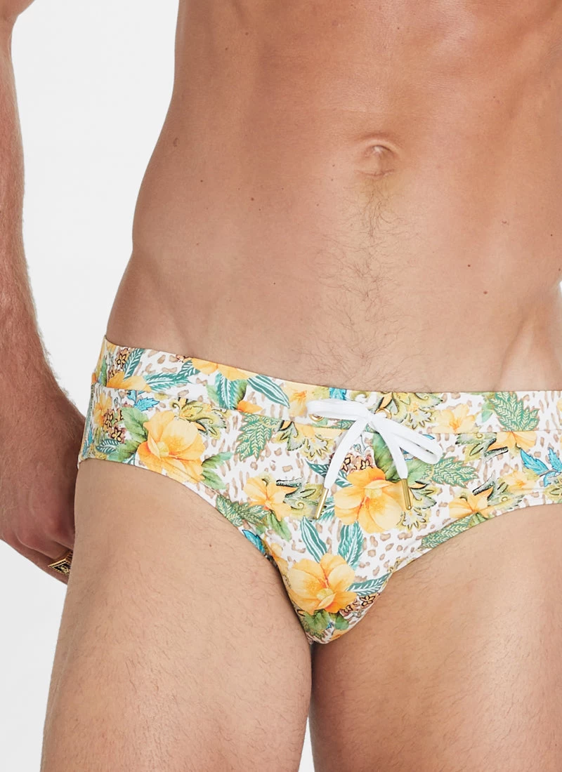 The Dahlia Racer Brief by Aqua Blu Australia features a draw cord, elastic waistband and front lining, providing the ultimate fit and function.
