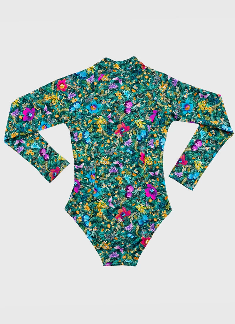 The Elm Long Sleeve One Piece by Aqua Blu Australia is a must have this summer. Protecting your child from UVA and UVB rays, this one piece boasts a UPF Sun Protection Rating of 50+