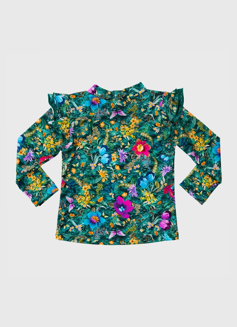 Designed to protect your child from harmful UVA and UVB rays, the Elm Long Sleeve Rash Vest by Aqua Blu Australia is essential for those long hot summer days spent on the beach.