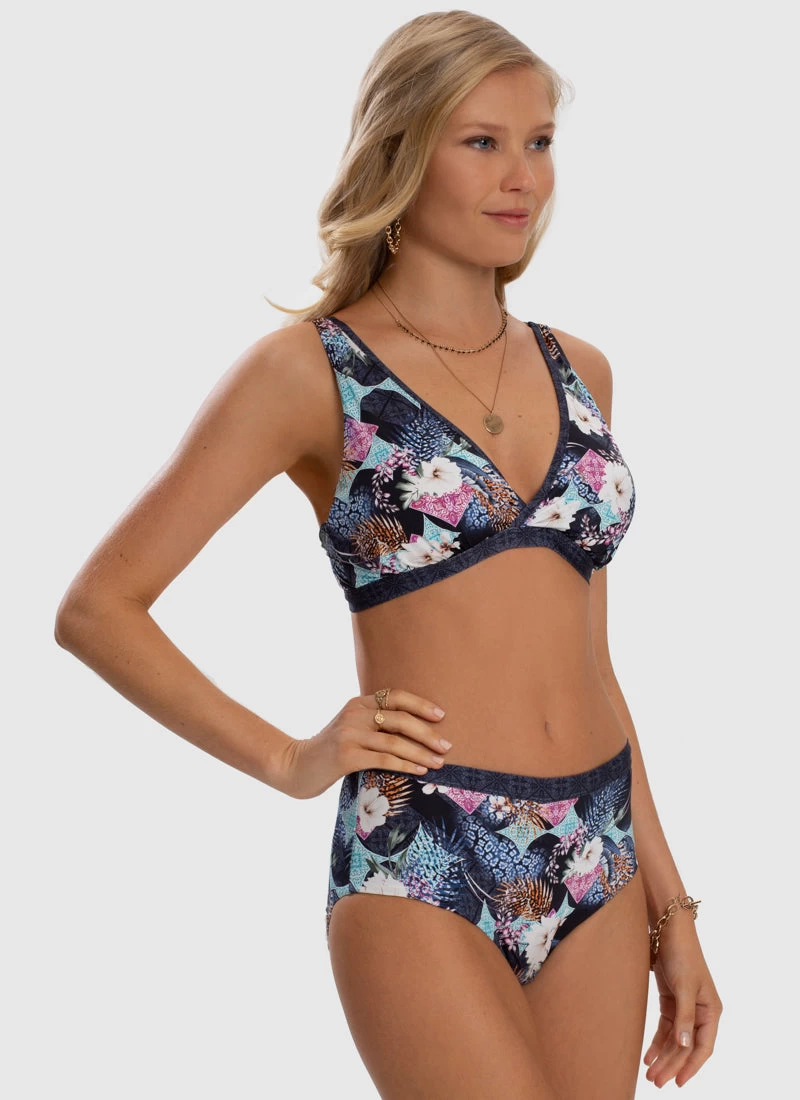 The Eros DD/D Cup Bikini Top by Aqua Blu Australia embodies minimalist design with wide adjustable shoulder straps and back clasp. The ultra-soft luxury fabric, removable cups and underwire support is designed to shape and support the body.