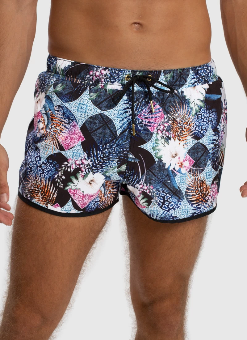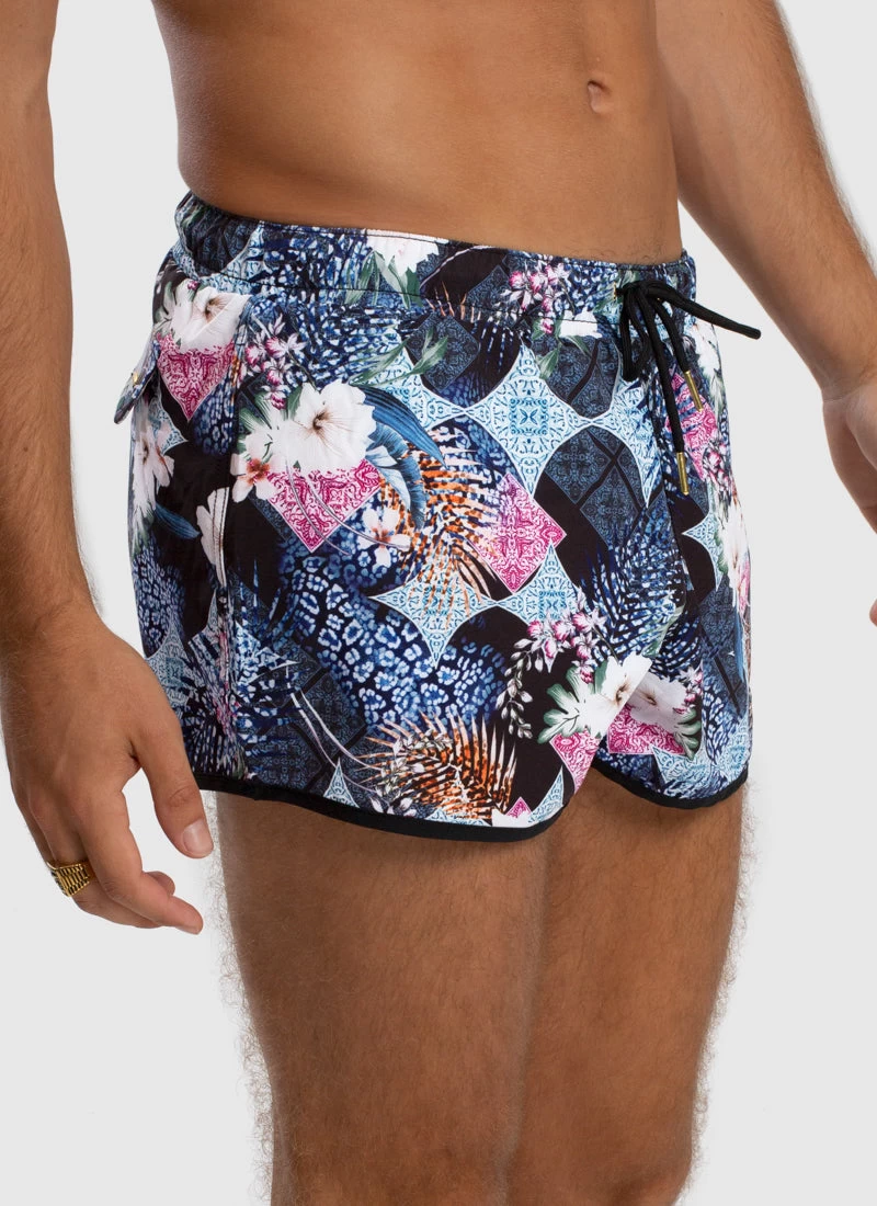 The Eros Running Shorts by Aqua Blu Australia are an athletic style short featuring a shorter leg length and elastic waistband to enhance mobility and comfort.Â