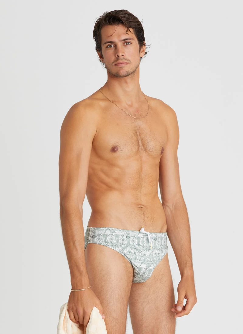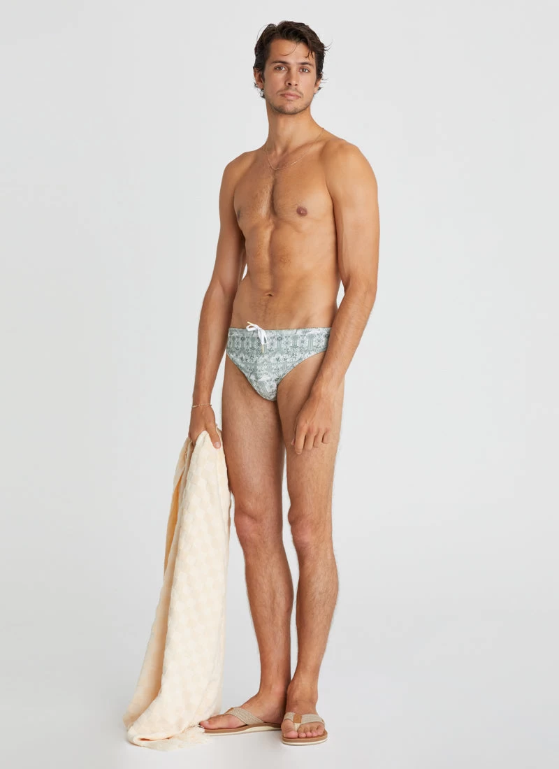 The Evergreen Racer Briefs by Aqua Blu Australia feature an adjustable draw cord and encased elastic waist, providing a comfortable and secure fit. Whether you’re hitting the beach or the pool, these briefs are a classic style that are perfect for any swimwear collection.