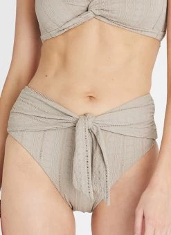 The Fawn Margot High Waist Pant by Aqua Blu Australia sits comfortably at the waist with a leg line offers a moderate cut at front, a front tie with subtle dip and a moderate-full bottom coverage. The ultra-soft luxury fabric is designed to hug and shape the body.