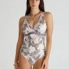 The Floret Nicola One Piece by Aqua Blu Australia embodies minimalist design with a crew neckline, adjustable shoulder straps and removable belt detail. The ultra-soft luxury fabric, removable cups and front power mesh provides a comfortable and supportive fit.