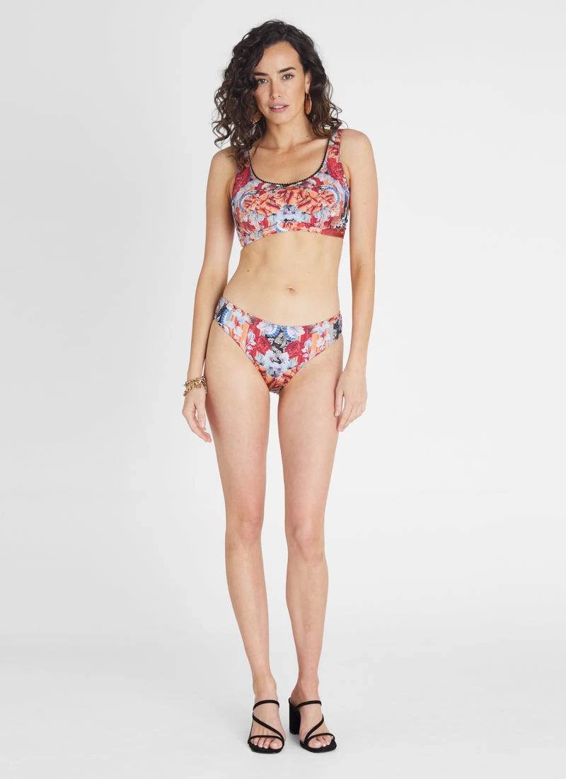 The Gardenia Lucy Bikini Top by Aqua Blu Australia embodies minimalist design with wide adjustable shoulder straps and back clasp. The ultra-soft luxury fabric, removable cups and underwire support is designed to shape and support the body.