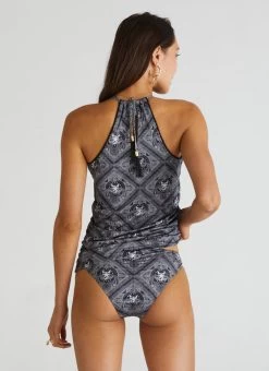 The Imperial Lawley Tankini by Aqua Blu Australia. Crafted from luxurious Lycra®, the tankini is incredibly comfortable. The ultra-soft luxury fabric, internal shelf bra and removable cups work to shape and support the body.