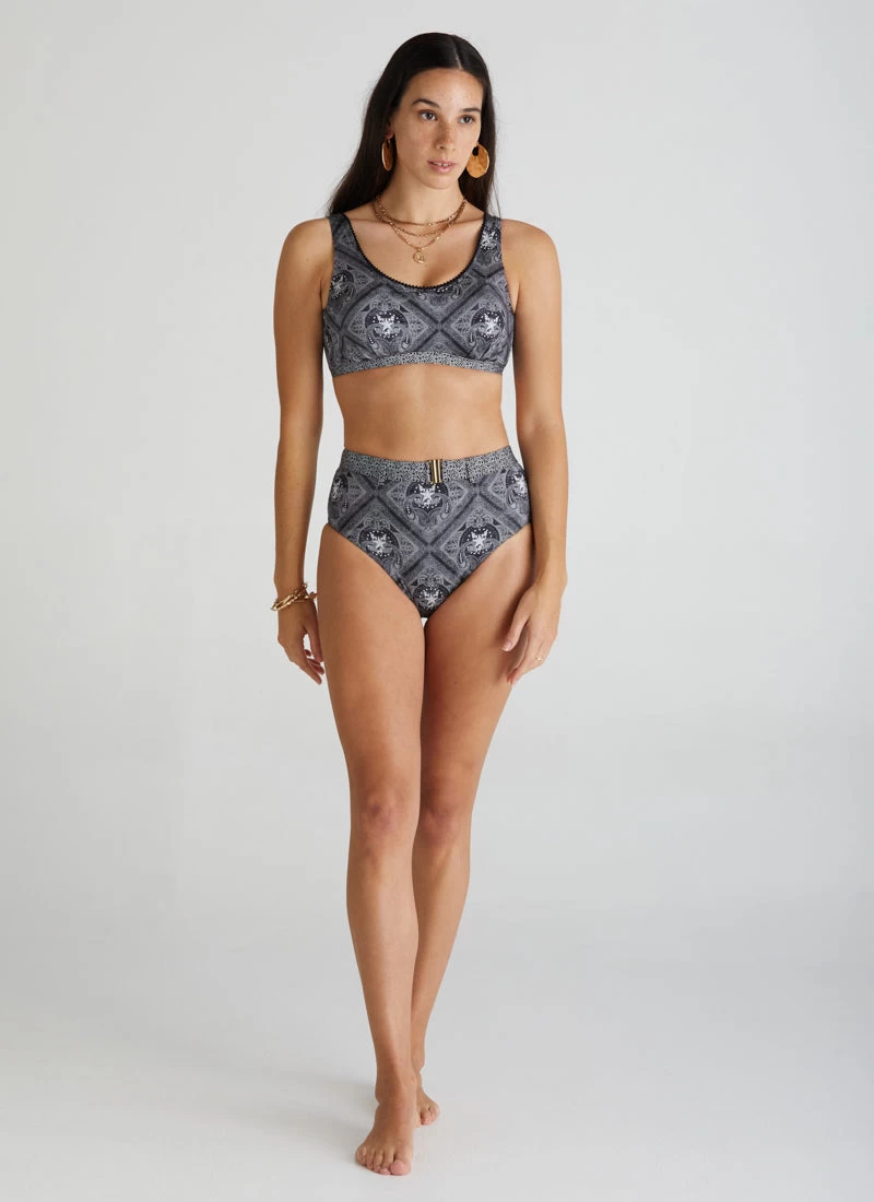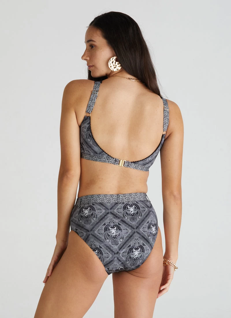 The Imperial Lucy Bikini Top by Aqua Blu Australia embodies minimalist design with wide adjustable shoulder straps and back clasp. The ultra-soft luxury fabric, removable cups and underwire support is designed to shape and support the body.