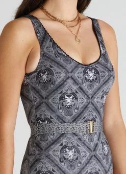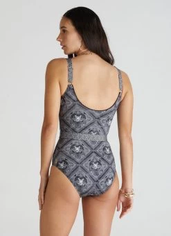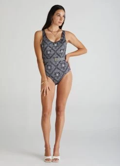 The Imperial Nicola DD/E Cup One Piece by Aqua Blu Australia embodies minimalist design with a crew neckline, adjustable shoulder straps and gold clip belt detail. The ultra-soft luxury fabric, removable cups and front power mesh provides a comfortable and supportive fit.