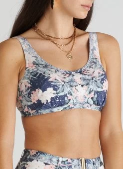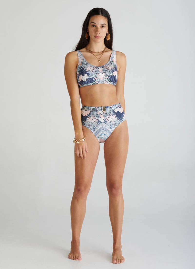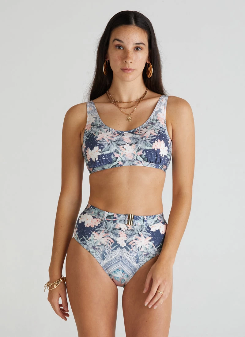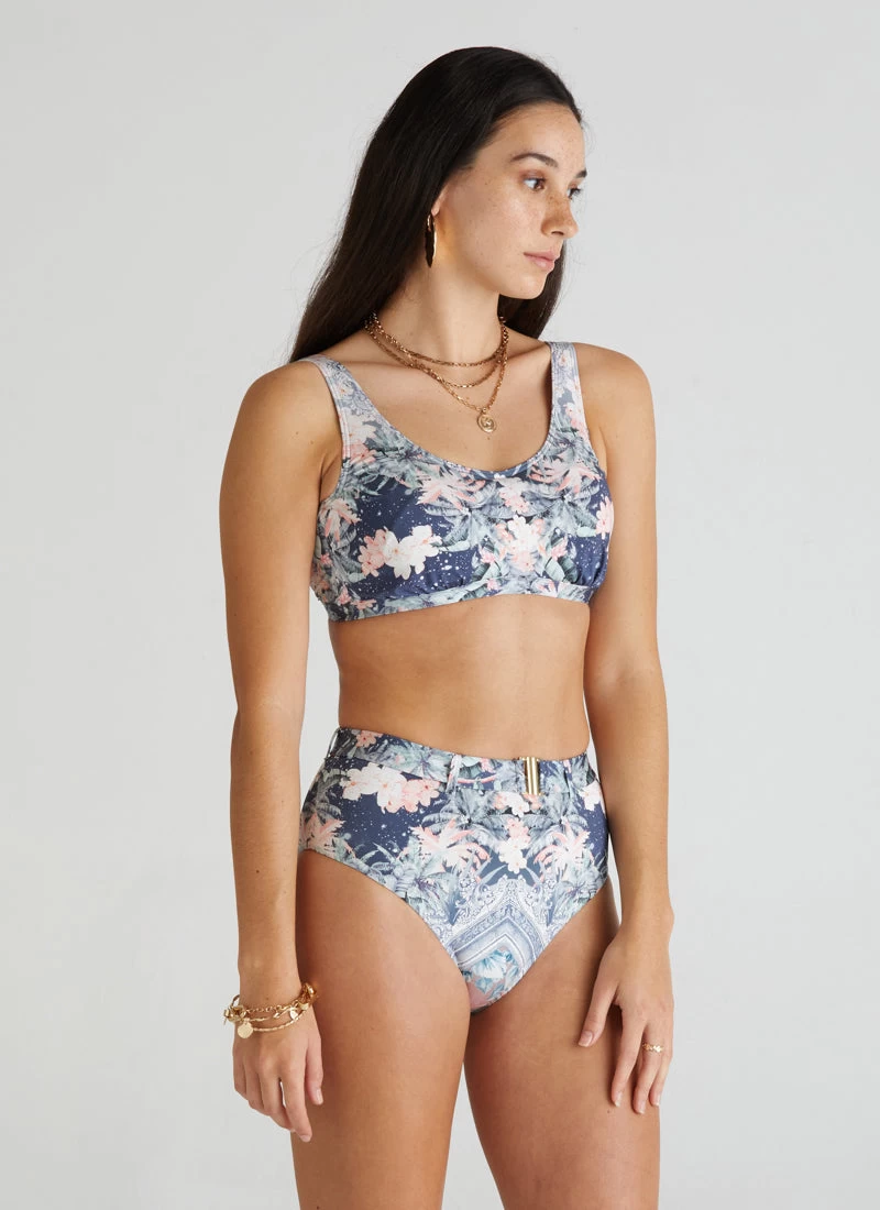 The Indianic Lucy Bikini Top by Aqua Blu Australia embodies minimalist design with wide adjustable shoulder straps and back clasp. The ultra-soft luxury fabric, removable cups and underwire support is designed to shape and support the body.