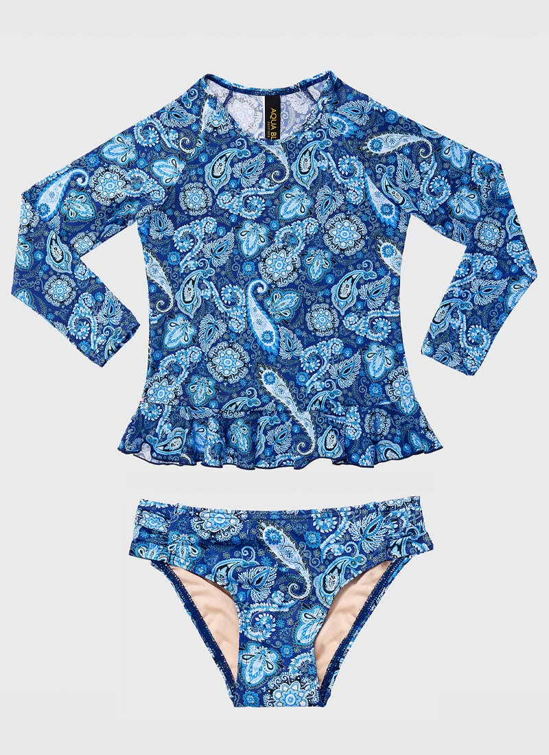 Designed for those long days spent on the beach or by the pool, the Laurel Long Sleeve Rash Vest Set by Aqua Blu Australia will protect your child from harmful UVA and UVB rays. Boasting a Sun Protection Rating of 50+, this Rash Vest Set is definitely an essential.
