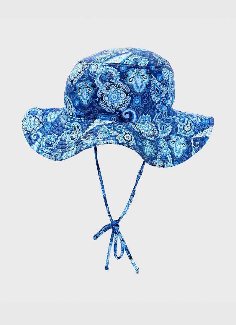 A summer necessity you cant leave home without! The Laurel Lycra Hat by Aqua Blu Australia is designed to protect your child from harmful UVA and UVB rays featuring an excellent UPF sun protection rating of 50+ and a tie string for an adjustable and secure fit.
