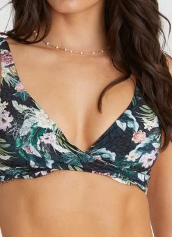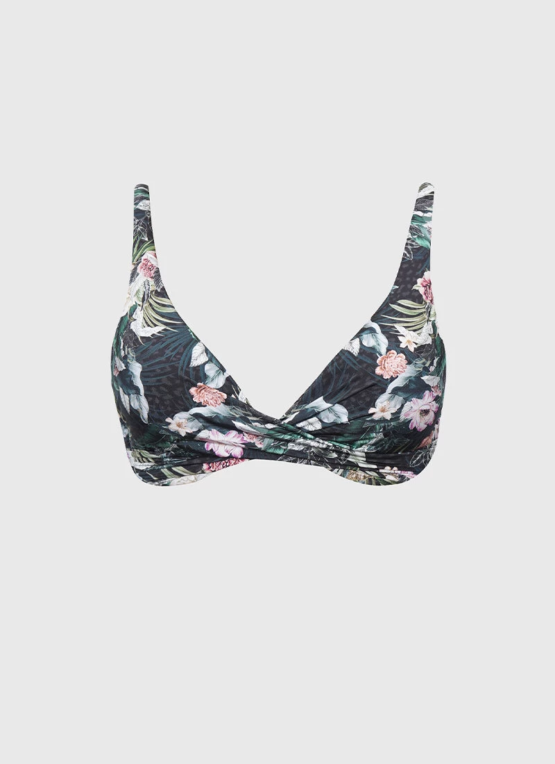 The Lisanthus Tahlia Bikini Top by Aqua Blu Australia features a stylish cross design with a twist front detail, adding a touch of sophistication to your swimwear collection. The underwire support and removable cups provide enhanced shaping and support, while adjustable straps ensure a comfortable and customizable fit.Â