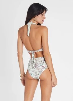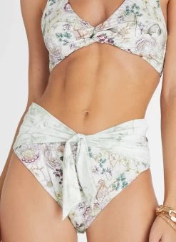 The Lotus Margot High Waist Pant by Aqua Blu Australia sits comfortably at the waist with a leg line offers a moderate cut at front, a front tie with subtle dip and a moderate-full bottom coverage. The ultra-soft luxury fabric is designed to hug and shape the body.