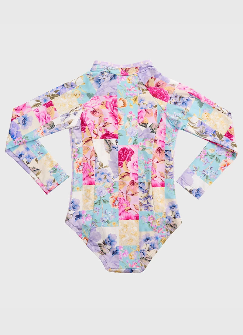 The Meadow Long Sleeve One Piece by Aqua Blu Australia is a must have this summer. Protecting your child from UVA and UVB rays, this one piece boasts a UPF Sun Protection Rating of 50+