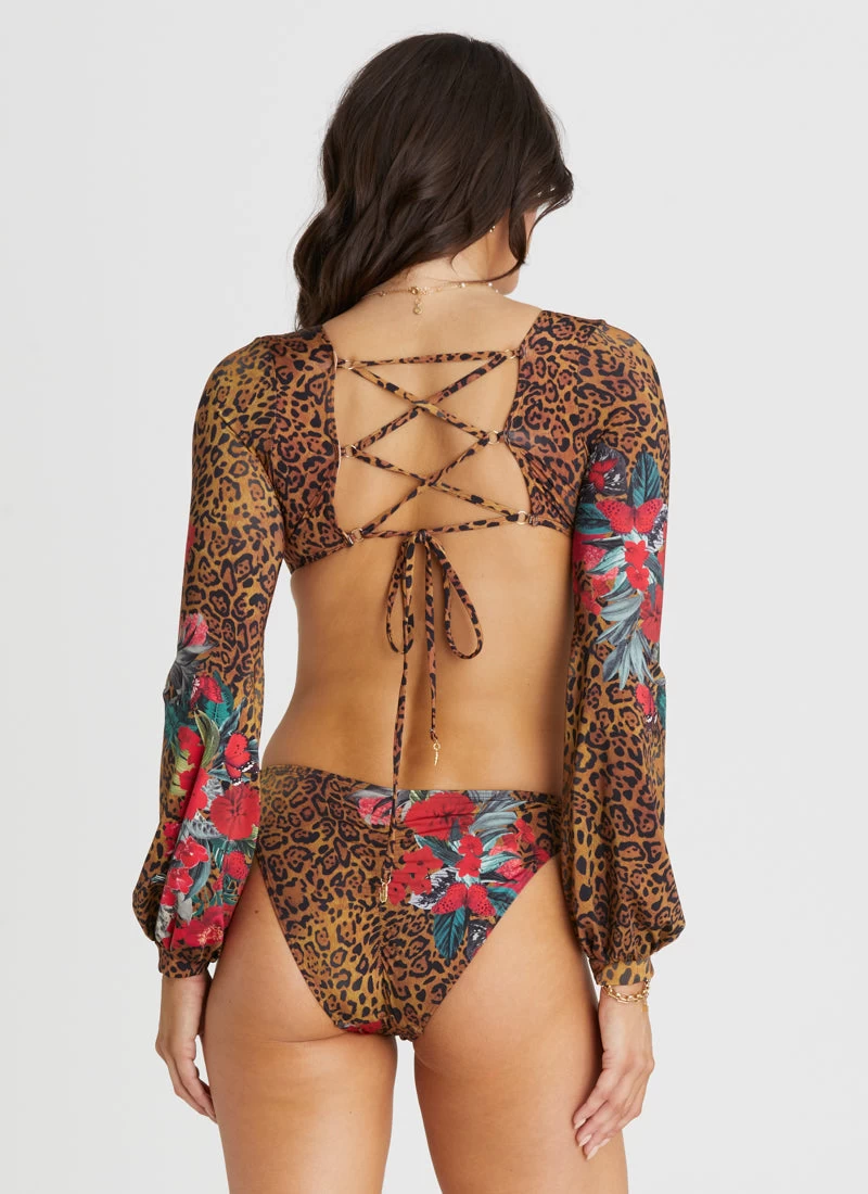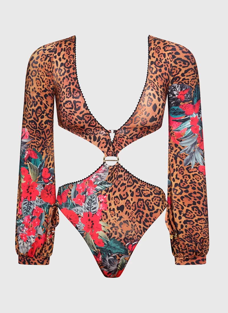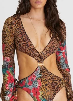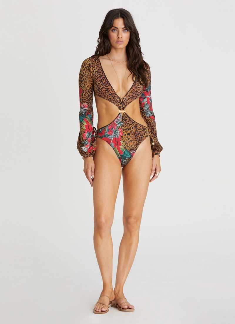 The Poppy Monaghan One Piece by Aqua Blu Australia is an elevated and chic swimsuit that is perfect for your next poolside weekend. The tulip sleeves and lace trim add a touch of elegance, while the V-neck and side cut-outs with ring detail give a flirty and playful feel. It’s the must-have one piece this Summer!