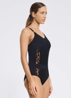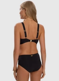 The Raven DD/D Cup Bikini Top by Aqua Blu Australia embodies minimalist design with wide adjustable shoulder straps and back clasp. The luxurious four-way stretch textured jacquard, removable cups and underwire support is designed to shape and support the body.