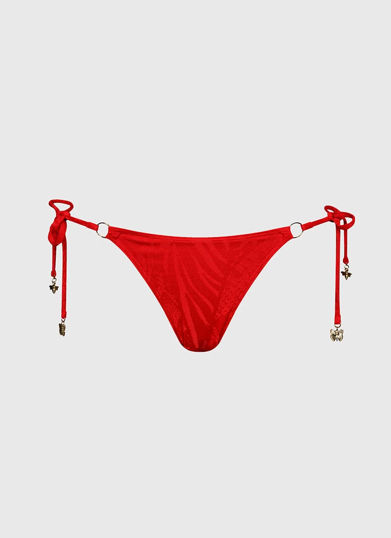 The Rossa Felicity Tie Side Pant by Aqua Blu Australia is the perfect addition to any timeless swimwear collection. Featuring adjustable tie sides, ruched detailing on the back, and a charming charm detail, these bikini bottoms are designed for a comfortable and customizable fit.Â