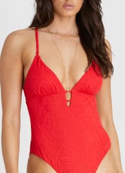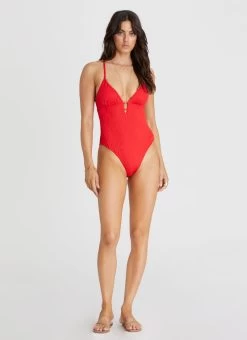 Experience the elevated Rossa Michelle One Piece by Aqua Blu Australia. This piece features a low V-neck design, scoop back and ring detail at the front for a touch of glamour. Whether lounging poolside or enjoying a day at the beach, this one piece is the perfect expression of understated elegance and opulent comfort.