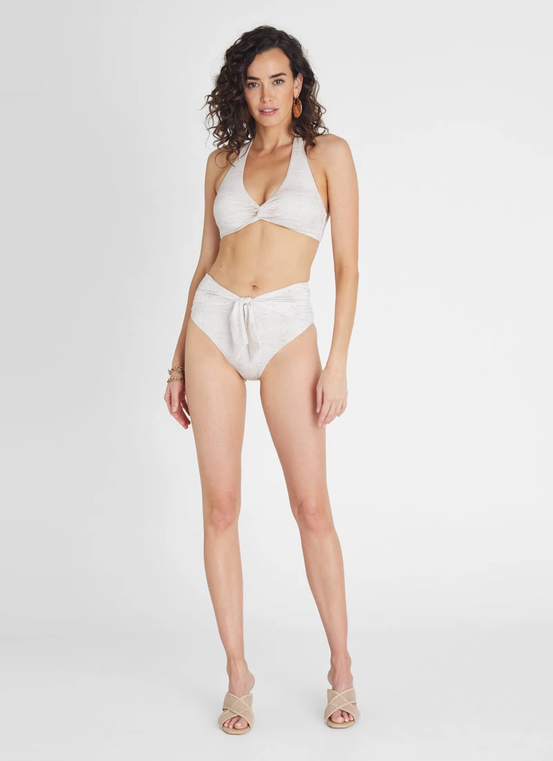 The Serpentine Elleni Bikini Top by Aqua Blu Australia will elevate your swim wardrobe. The ultra-soft luxury fabric, cross front design, and halter-neck tie is designed to shape and support the body.