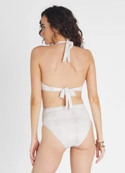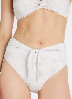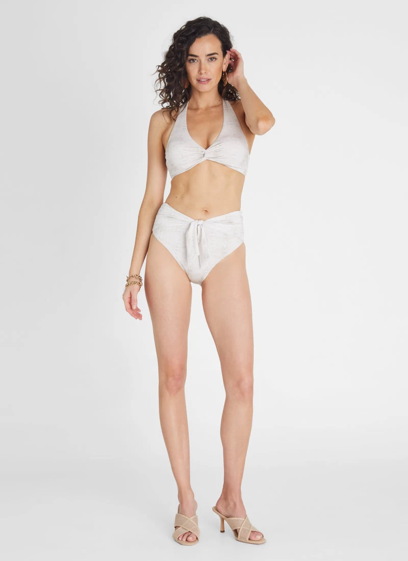 The Serpentine Margot High Waist Pant by Aqua Blu Australia sits comfortably at the waist with a leg line offers a moderate cut at front, a front tie with subtle dip and a moderate-full bottom coverage. The ultra-soft luxury fabric is designed to hug and shape the body.