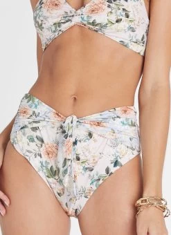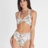 The Vervain Margot High Waist Pant by Aqua Blu Australia sits comfortably at the waist with a leg line offers a moderate cut at front, a front tie with subtle dip and a moderate-full bottom coverage. The ultra-soft luxury fabric is designed to hug and shape the body.